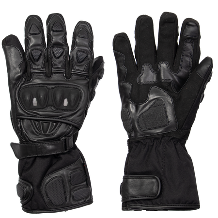 This glove is fitted with impact protectors for the knuckles and palm areas.