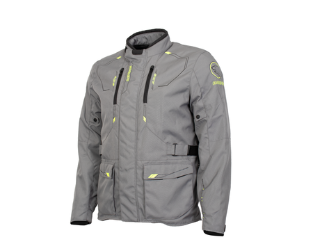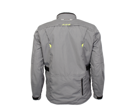 This garment is fitted with impact protectors for the elbows and shoulders. A pocket is provided for an aftermarket back protector.